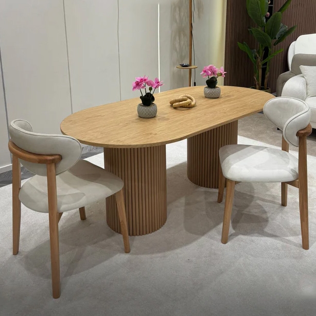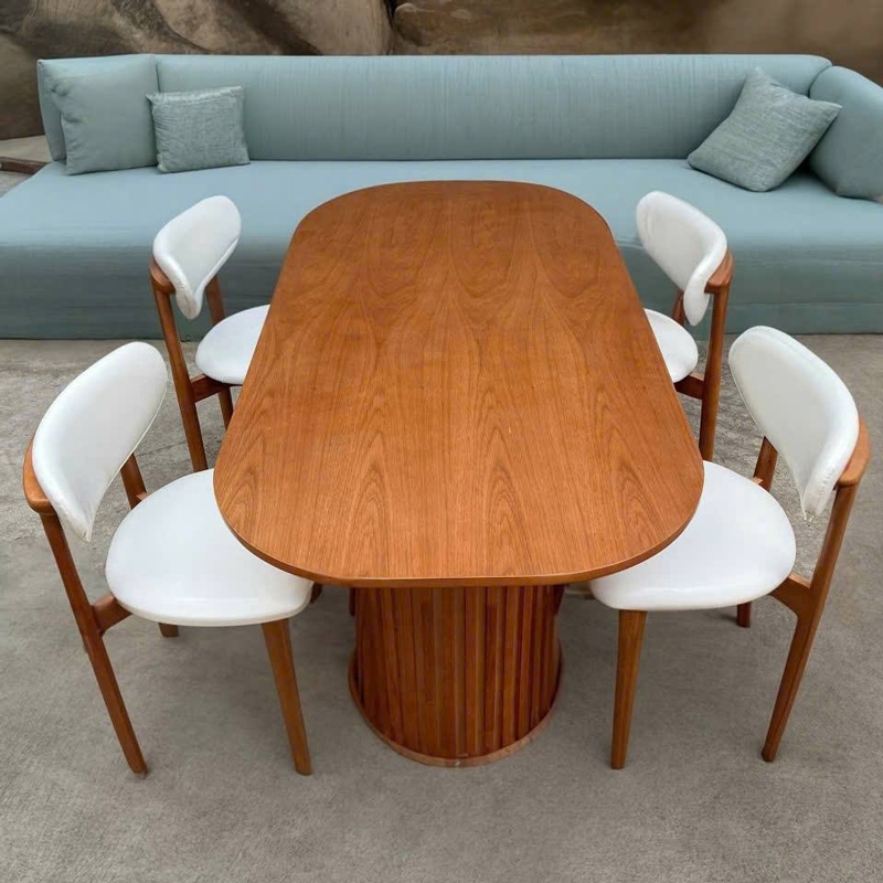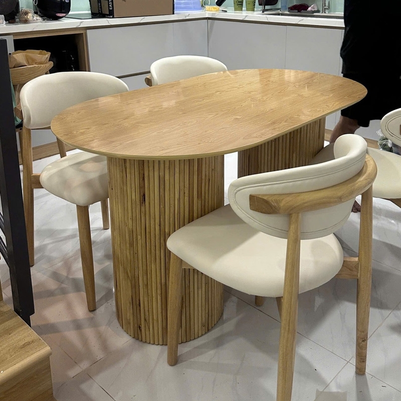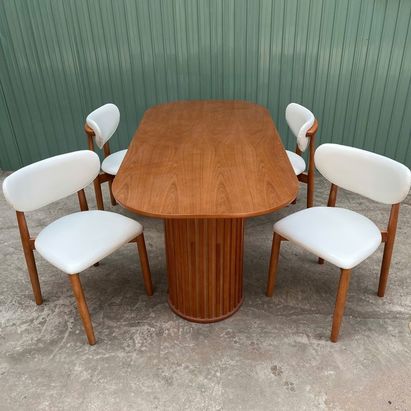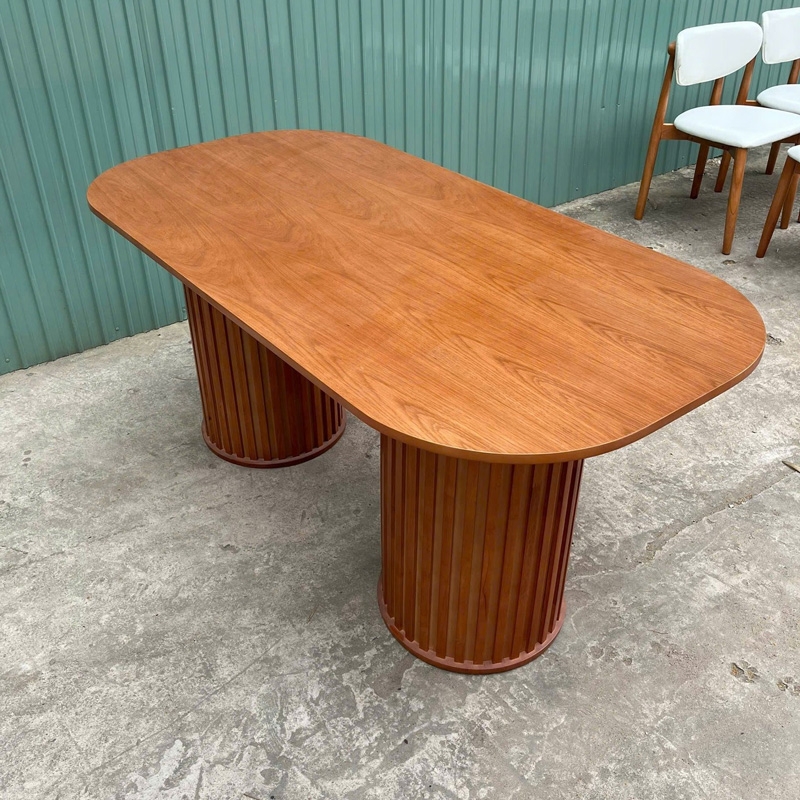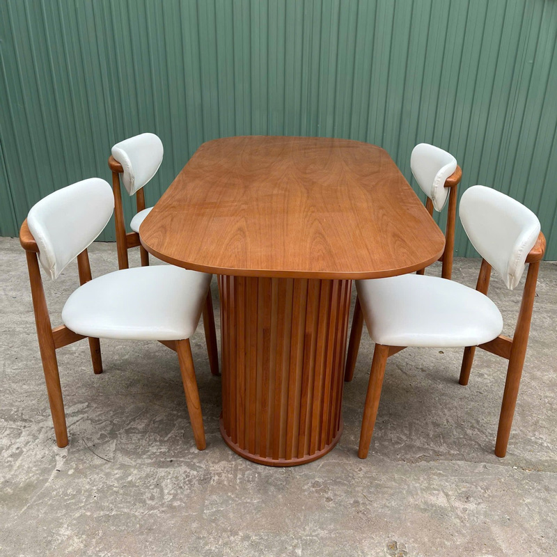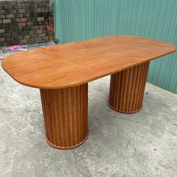 Bàn ăn chân trụ – thiết kế tinh giản, hiện đại cho mọi không gian, bàn mang phong cách tối giản nhưng vẫn nổi bật, Chân trụ này được thiết kế để phù hợp với cả căn hộ nhỏ lẫn không gian gia đình rộng rãi. 2 cạnh bàn được bo tròn mềm mại giúp an toàn hơn cho gia đình có trẻ nhỏ, bàn sử dụng 2 chân trụ to bản, được ốp gỗ cao su chắc chắn, tạo cảm giác sang trọng và ổn định trong quá trình sử dụng. Kiểu dáng chân trụ cũng giúp không gian dưới bàn thoáng và dễ bố trí ghế. Dù là nhà phố, chung cư, studio hay quán café, mẫu bàn này đều dễ dàng hòa hợp với nhiều tông màu hiện đại. Sử dụng làm bàn ăn, bàn tiếp khách nhỏ, bàn làm việc nhẹ nhàng đều phù hợp.
