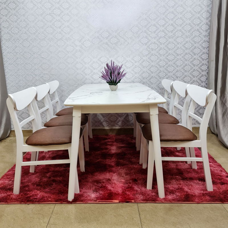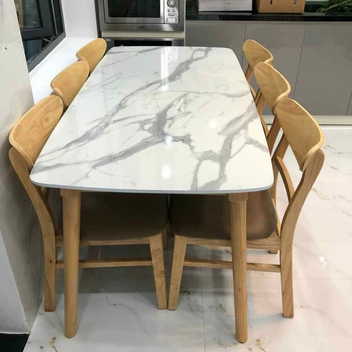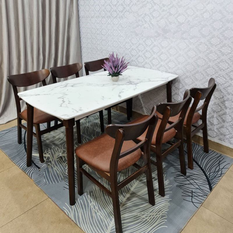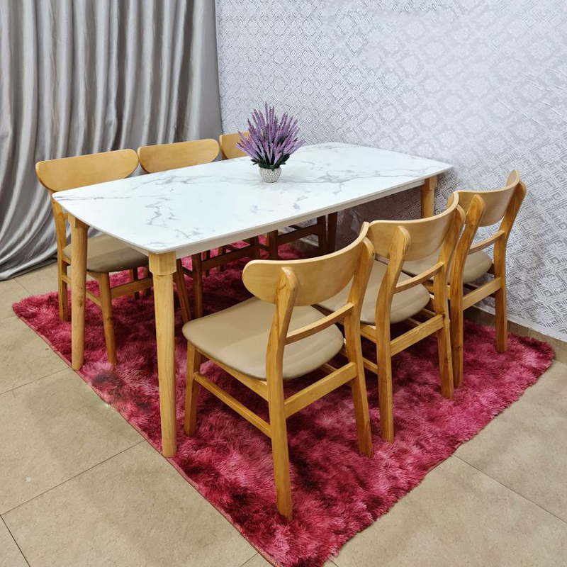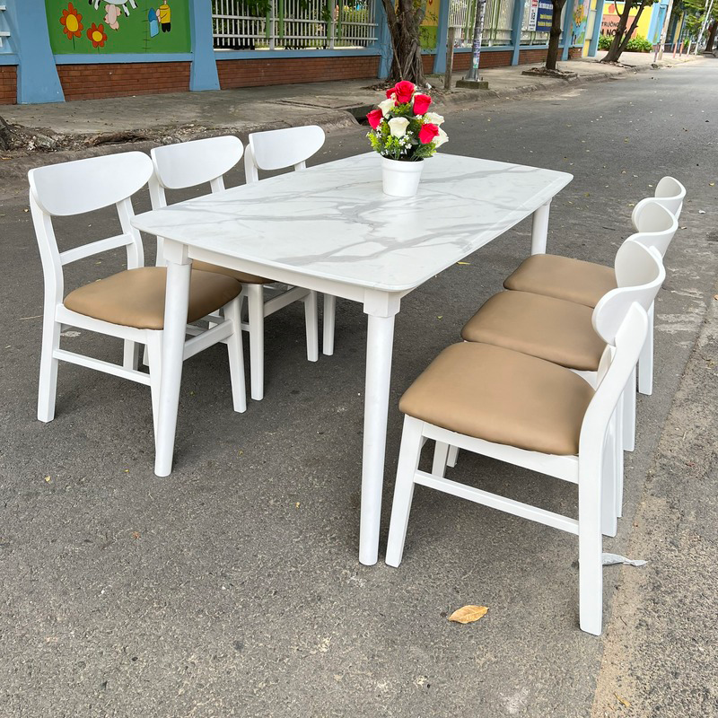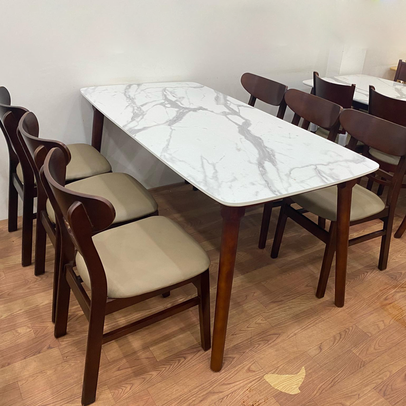 I. Bộ bàn ăn mặt giả vân đá + 6 ghế Mango