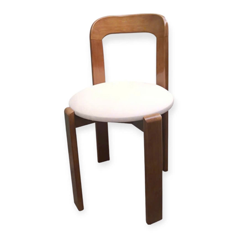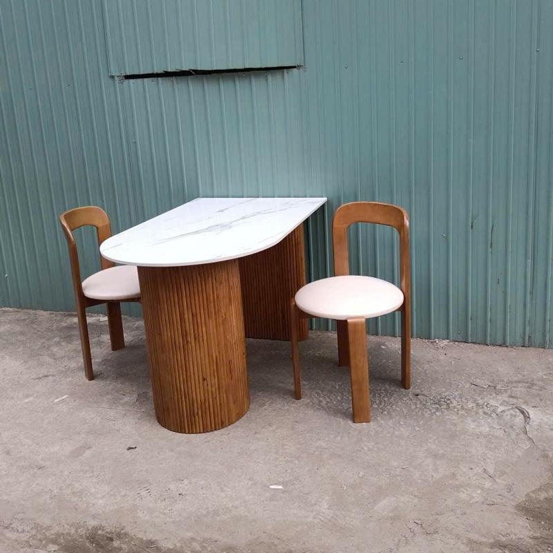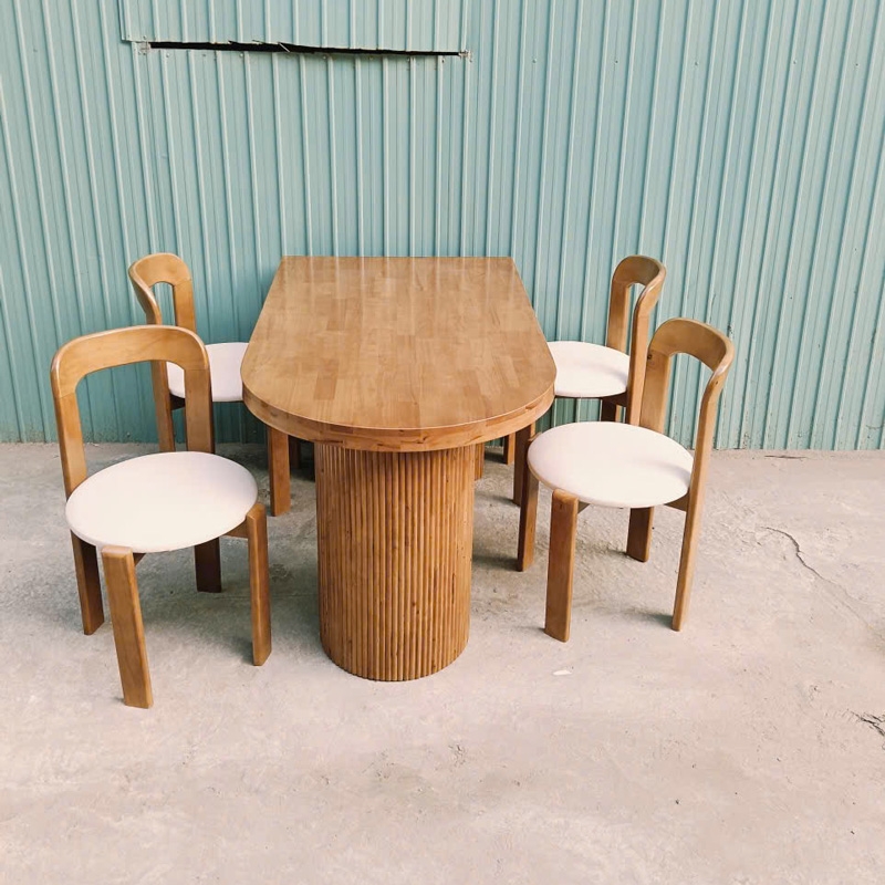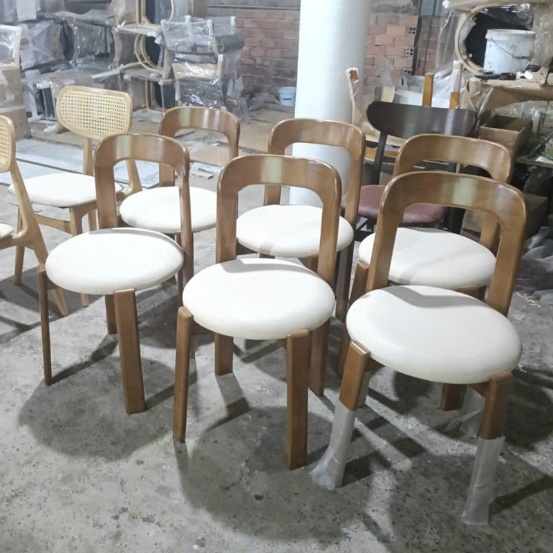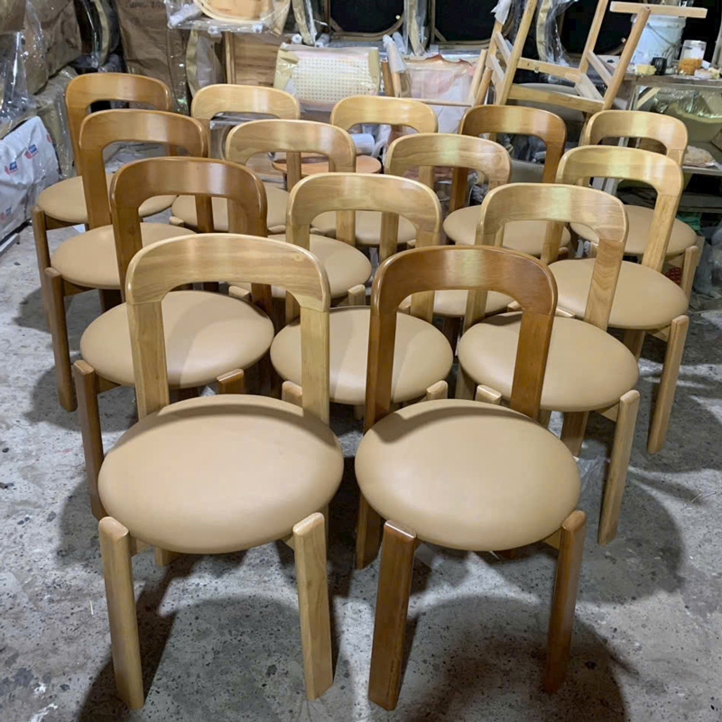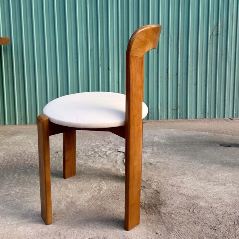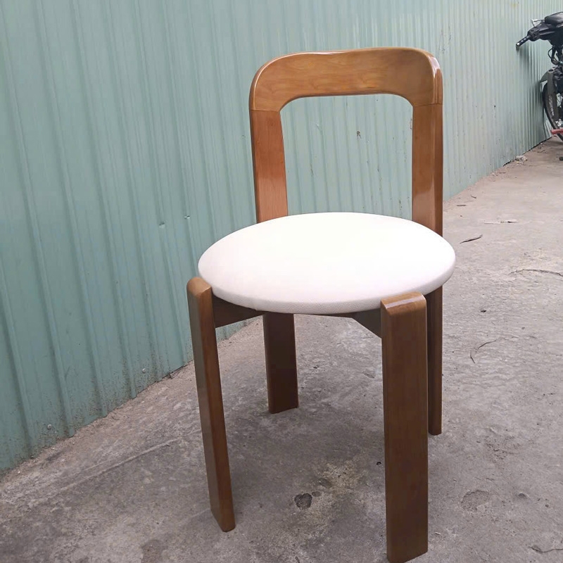 Ghế Rey mang phong cách tối giản nhưng vẫn rất tinh tế, phù hợp với nhiều không gian từ phòng ăn đến quán cafe. Phần khung làm từ gỗ cao su, kết hợp với tựa lưng plywood thiết kế bo cong nhẹ, liền mạch giúp nâng đỡ lưng thoải mái khi ngồi lâu. Mặt ngồi tròn bọc nệm êm ái. Chân ghế chắc chắn, được xử lý kỹ lưỡng đảm bảo độ ổn định và chịu lực tốt. Một lựa chọn vừa đẹp, vừa tiện dụng cho không gian sống hiện đại.