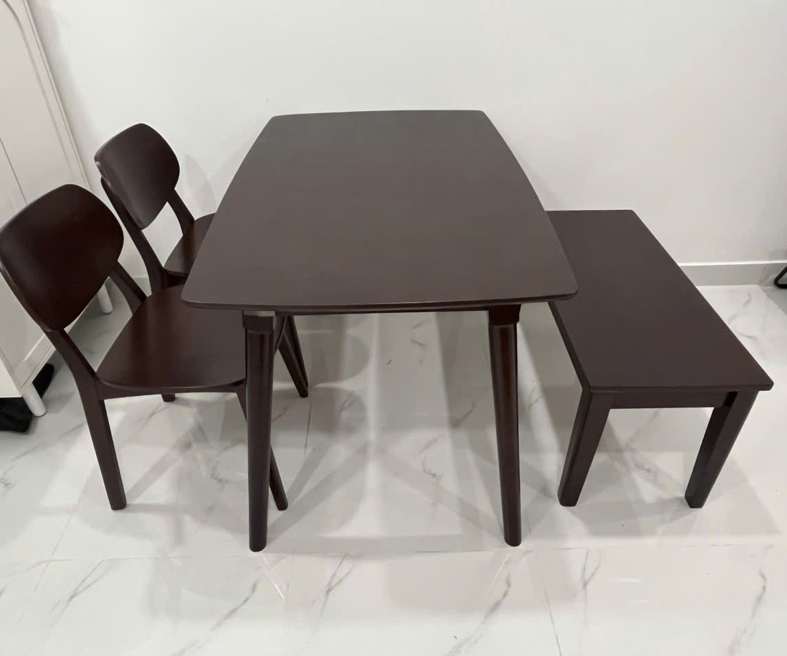 Năm 2025, mọi người dường như chuộng sự ấm áp và tối giản hơn trong không gian sống. Vì vậy, những mẫu bàn ăn 4 ghế gỗ màu nâu óc chó trở thành lựa chọn quen thuộc của rất nhiều gia đình. Màu nâu trầm vừa sang, vừa dễ phối nội thất, lại mang cảm giác gần gũi mỗi khi quây quần bên bữa cơm.